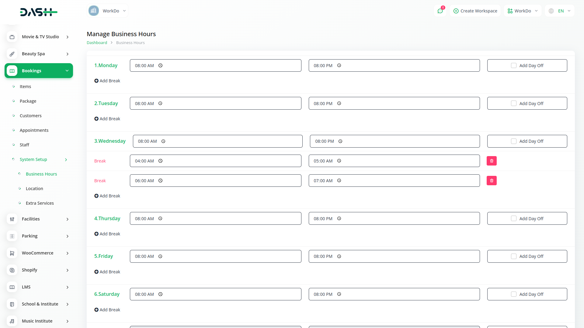 Obtenha informações valiosas sobre as tendências de reservas e o desempenho do negócio com o Dash Saas Bookings Module / s analytics. Rastreie métricas importantes como números de compromissos, horários de pico de reservas e preferências do cliente. Use esses dados para tomar melhores decisões sobre pessoal, marketing e serviços. Nossos relatórios e painéis simples fornecem uma visão clara de como seu sistema de reservas está funcionando, ajudando a melhorar a eficiência e a lucratividade. Além disso, você pode gerenciar reservas tanto do backend quanto do frontend, dando controle completo e flexibilidade sobre seu processo de agendamento.