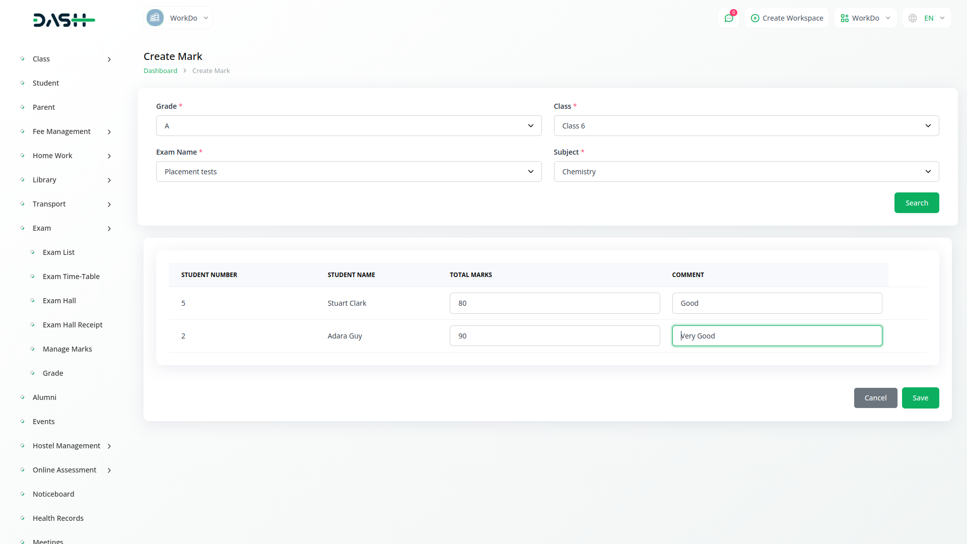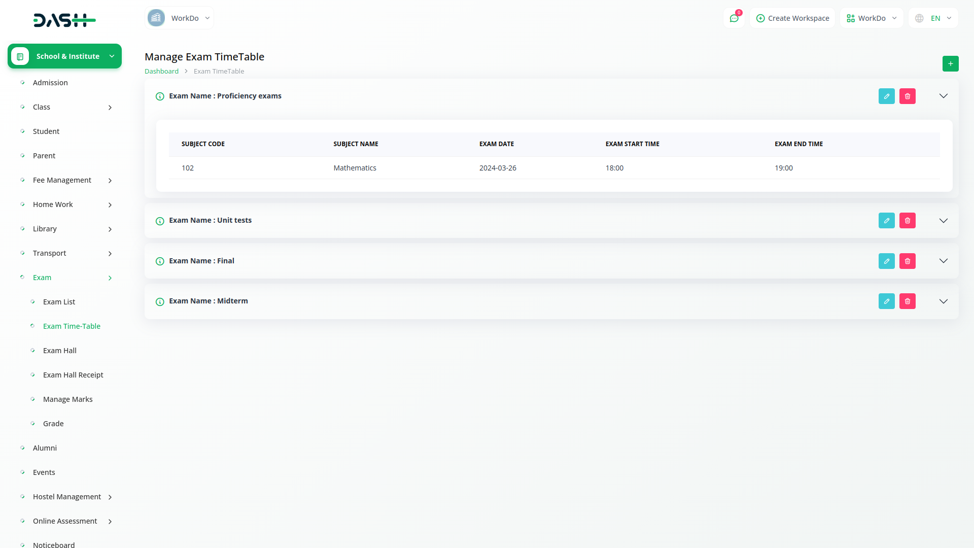 Managing examinations efficiently is a critical aspect of academic administration, and Dash SaaS`s Exam Module offers a comprehensive solution to streamline this complex process. With its user-friendly interface and robust features, educational institutions can effortlessly handle exam scheduling, hall allocation, and mark management. By centralizing exam-related tasks within a single platform, administrators can save time and resources while ensuring the smooth execution of examinations.