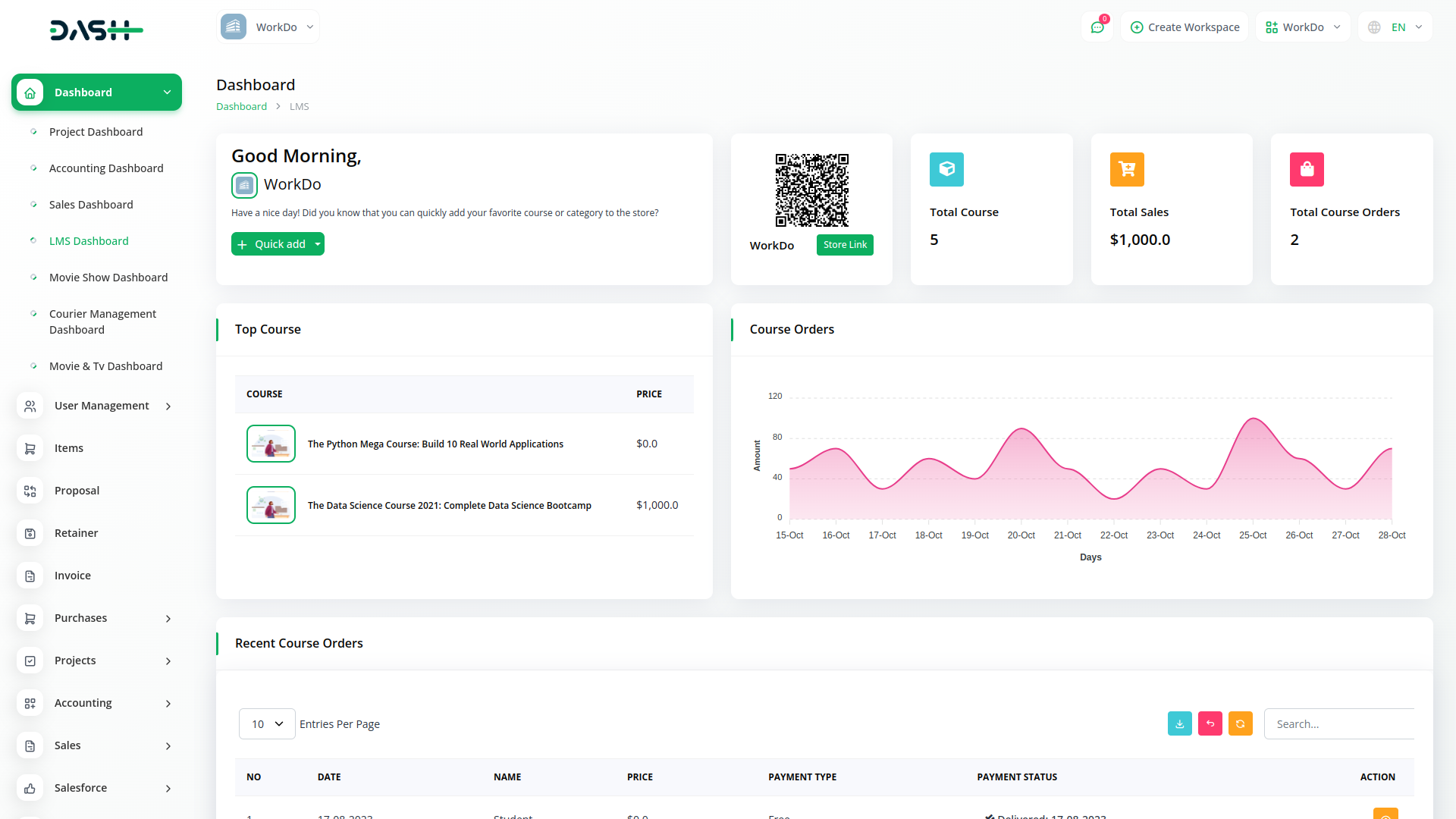 Easily organize all your courses by dividing them into distinct course categories. Easily manage all the courses in your store. Keep your inventories in a single tab and manage every aspect of your courses. View course details like names, prices, categories, qualities etc.