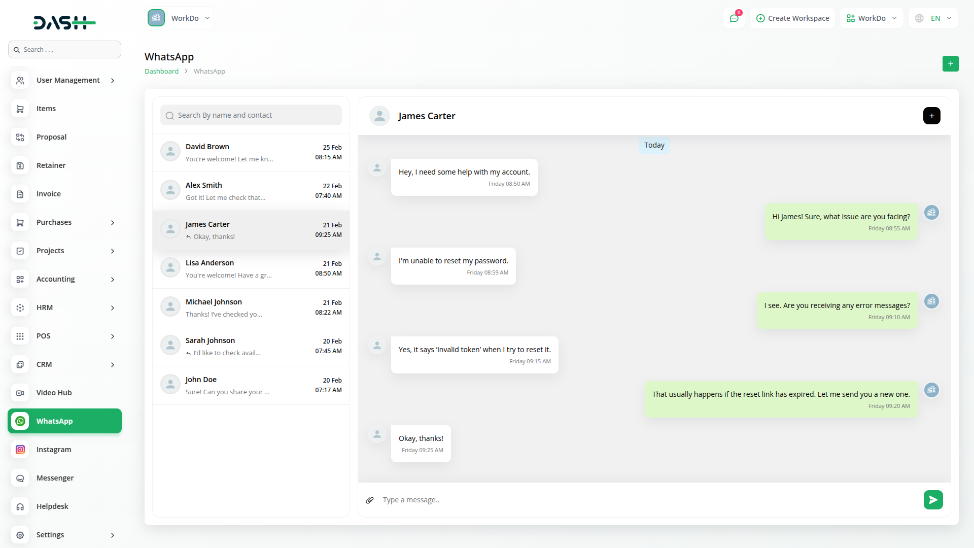 Manage all your WhatsApp customer conversations in one place with Dash SaaS, ensuring quick responses, easy integration, and a hassle-free messaging experience.